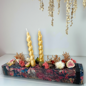 Κηροπήγιο ξύλινο με αποξηραμένα λουλούδια!
